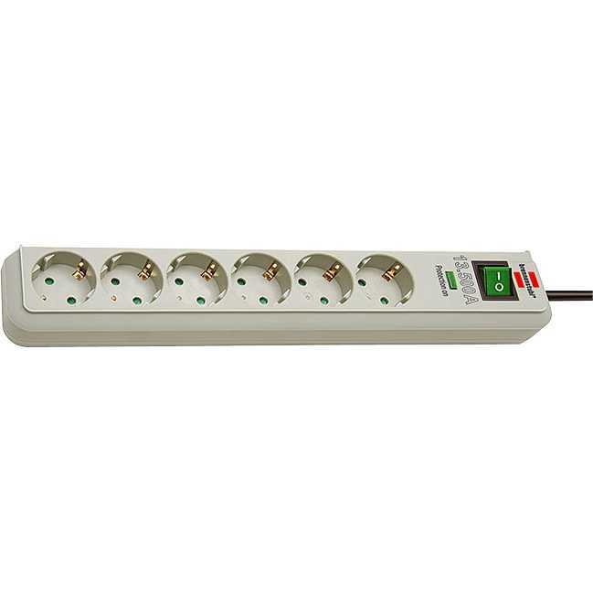 De lichtgrijze Brennenstuhl Eco-Line 6-voudige stekkerdoos met overspanningsbeveiliging tot 13.500A beschermt waardevolle apparaten tegen overspanning. De contactdozen zijn 45° gedraaid en voorzien van contactbescherming. Er is een verlichte veiligheidsschakelaar en een controlelamp als indicatie voor de correcte werking van de overspanningsbeveiliging.