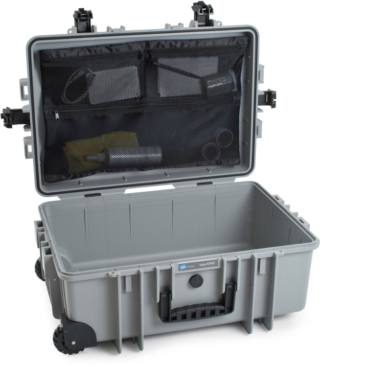 Deze tas van netstof past in de transportkoffers type 6700 van B&W International. Hij wordt eenvoudig met een klittenband in het kofferdeksel bevestigd.