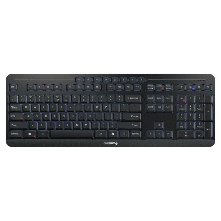 Het STREAM KEYBOARD ULTIMATE biedt een uitstekende combinatie van comfort, design en technologie. Het CHERRY SX-schaarmechanisme maakt precieze, soepele en fluisterstille toetsaanslagen mogelijk. De slanke constructie ondersteunt een ergonomische handpositie en een aangenaam typegevoel. Elke toetsaanslag telt De witte achtergrondverlichting met vijf instelbare helderheidsniveaus zorgt voor uitstekende zichtbaarheid in elke omgeving, terwijl extra status-LED’s je informeren over belangrijke functies zoals kanaalselectie en Caps Lock. De 6-key rollover-technologie maakt snel en nauwkeurig typen mogelijk – zelfs wanneer meerdere toetsen tegelijk worden ingedrukt. Een geïntegreerde metalen plaat en rubberen voetjes zorgen voor betrouwbare stabiliteit. Drie instelbare hellingshoeken (0°/4°/8°) maken het mogelijk je typehouding te personaliseren. Acht mediatoetsen en kantoorsneltoetsen verbeteren de dagelijkse workflows, en de Co-Pilot-toets biedt directe toegang tot AI-ondersteuning voor slimmer werken. Met de gratis CHERRY KEYS-software kun je je toetsenbord eenvoudig aanpassen aan je persoonlijke workflow. Maximale Flexibiliteit, Minimale Compromissen Met vier verbindingsmodi – twee Bluetooth® 5.2-kanalen, 2,4 GHz draadloos en USB-kabel – plus een ingebouwde accu, automatisch opladen via kabel en een compacte nano-ontvanger past de CHERRY STREAM KEYBOARD ULTIMATE zich moeiteloos aan je workflow aan. Of je nu schakelt tussen apparaten of onderweg werkt, deze desktopset levert altijd naadloze prestaties. Beveiliging gegarandeerd De volledige set verzendt toetsaanslagen en invoer met AES-128- versleuteling, zowel in Bluetooth®- als 2,4 GHz-modus. Ontworpen met duurzaamheid in gedachten, bevat het toetsenbord een hoog aandeel gerecycled plastic en premium koperen accenten – een functioneel en visueel hoogtepunt voor elke werkplek. Het toetsenbord voor veeleisende gebruikers Of je nu thuis werkt of in een professionele kantooromgeving, de CHERRY STREAM KEYBOARD ULTIMATE is jouw ideale keuze: uitmuntende kwaliteit, ergonomisch design, duurzame materialen en premium engineering in één complete oplossing.