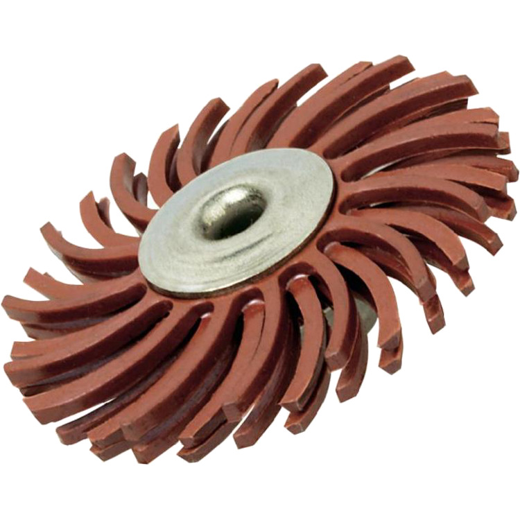 De detailpolijstschijven hebben uiterst flexibele borstelharen waarmee de buitenste “oppervlaktelaag” kan worden verwijderd zonder de onderliggende basislaag te beschadigen. Deze kan worden gebruikt voor ontbramen, reinigen, afwerken en polijsten van details, kleine gebieden en onregelmatige plekjes.
