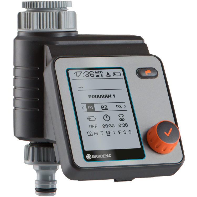 De GARDENA besproeiingscomputer Master zorgt voor automatische en tijdbesparende besproeiing, ook als je niet thuis bent. Met de GARDENA besproeiingscomputer Master kan de besproeiing bijzonder flexibel en individueel worden ingesteld. Er kunnen maximaal zes verschillende en onafhankelijke planningen worden gemaakt. Het apparaat werkt op batterijen, is rechtstreeks op de kraan aangesloten en kan eenvoudig worden bediend met alleen een draai- en drukknop om de gegevens te selecteren en te bevestiging. Een gemakkelijk leesbaar, volledig grafisch display toont alle instellingen in één oogopslag. Het menu kan in 10 talen worden ingesteld. Het weerbestendige bedieningspaneel kan worden verwijderd. Het is gemakkelijk om de besproeiingsduur centraal aan te passen of om alle besproeiingen bij slecht weer stop te zetten. De unit is ideaal voor het automatisch regelen van de GARDENA waterverdeler. De Water Control Master kan ook worden gebruikt in combinatie met een GARDENA bodemvochtigheidssensor.