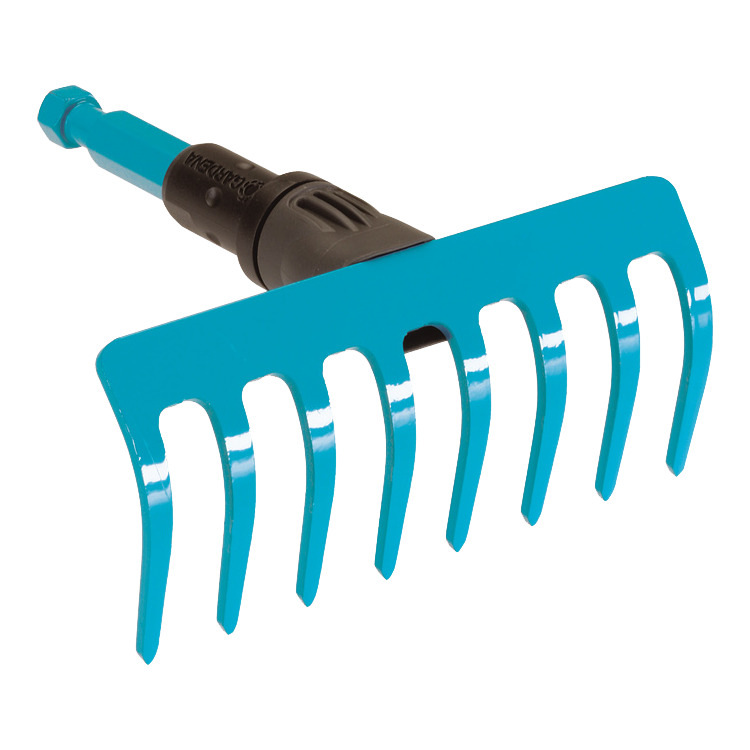 De GARDENA Combisystem hark (3184-20) is een handig en multifunctioneel gereedschap en is uitermate geschikt voor kleinere karweien als het harken, egaliseren en bewerken van de grond. De hark heeft een werkbreedte van 15 cm (met 8 tanden) en is geschikt voor alle stelen van het GARDENA Combisystem.
