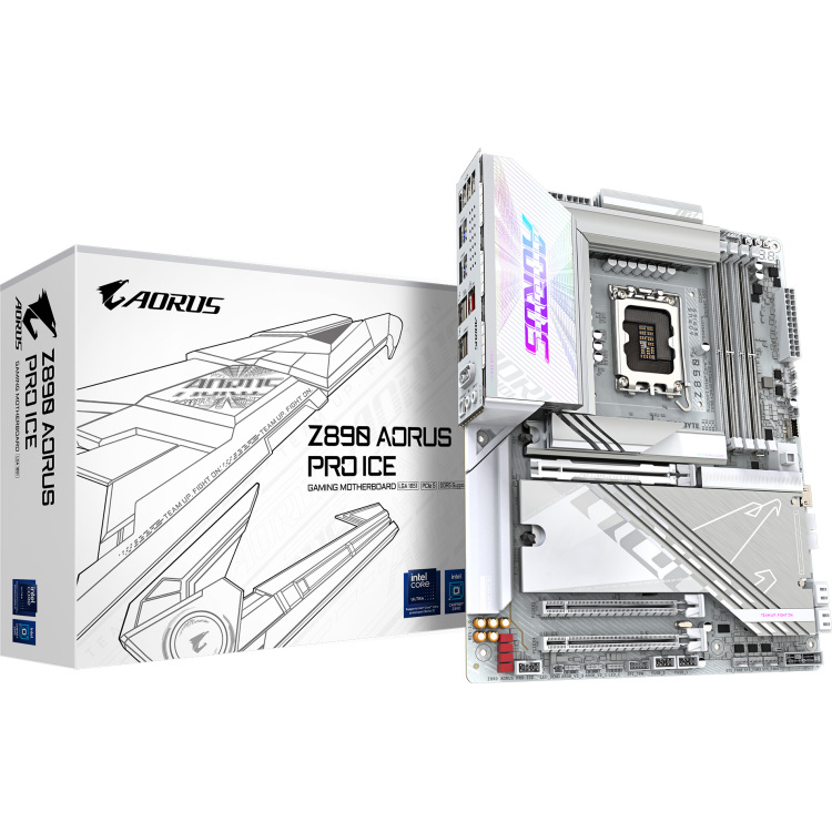 Het GIGABYTE Z890 AORUS PRO ICE moederbord is gebaseerd op de Intel® Z890 chipset en ondersteunt Intel® processors voor socket 1851. Het heeft vier DDR5-sleuven voor maximaal 256 GB RAM. De GIGABYTE Z890 AORUS PRO ICE is ook uitgerust met één PCIe 5.0 x16 slot, één PCIe 4.0 x16 slot (x4 lanes) en één PCIe 3.0 x16 slot (x1 lanes). De GIGABYTE Z890 AORUS PRO ICE beschikt ook over 8-kanaals geluid, een 5 Gigabit LAN-interface, Wi-Fi 7, Bluetooth 5.4, vier SATA3-poorten, vijf M.2-poorten, vier USB-A 2.0, vier USB-A 3.2 (5 Gbit/s) en twee USB-A 3.2 (10 Gbit/s) interfaces.