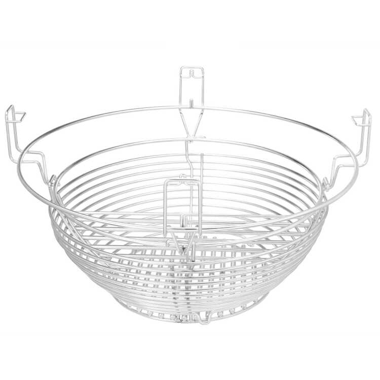 Met de roestvrijstalen houtskoolmand van Kamado Joe kun je snel overgebleven houtskool van de as scheiden en ben je in enkele seconden klaar voor de volgende kooksessie. Bovendien zorgt de houtskoolmand voor een betere luchtstroom door de kleine houtskooldeeltjes uit te filteren, wat resulteert in schonere verbranding. De mand heeft een roestvrijstalen verdeling om meerdere kookzones te creëren, en is ontworpen voor aansluiting aan de onderkant van het Divide & Conquer Flexible Cooking System om gemakkelijk aan en los te koppelen bij het tillen in en uit de grill.