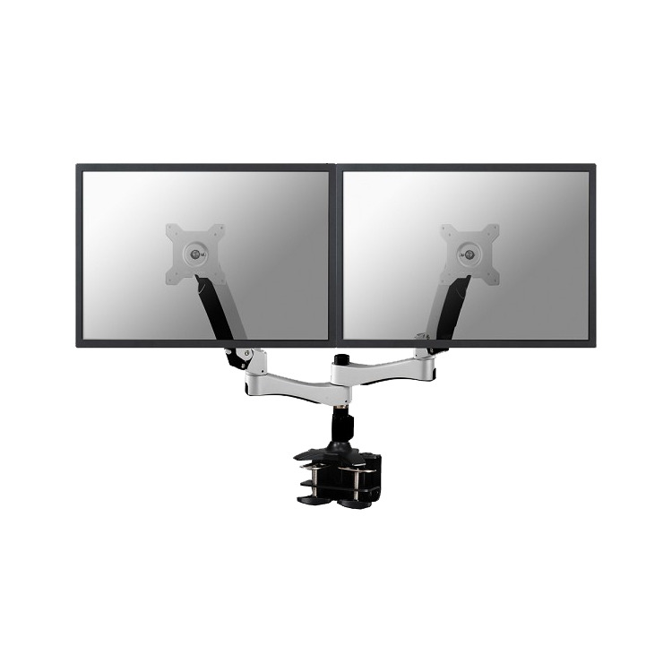 Met deze NewStar monitorarm, model FPMA-D980D, bevestigt u twee flatscreens aan het bureau via een bureauklem. Door gebruik te maken van een monitorarm profiteert u optimaal van de mogelijkheden van uw monitor. De monitorarm is eenvoudig in hoogte en diepte te verstellen. Tevens kunt u het scherm kantelen, zwenken en roteren. Hierdoor creëert u de ideale ergonomische werkhouding. Dit verkleint de kans op nek- en rugklachten. Kabels zijn netjes weg te werken aan de onderzijde van de horizontale arm. De FPMA-D980D heeft 3 draaipunten en is geschikt voor schermen t/m 27″ (69 cm). Het draagvermogen van de arm is 10 kg per scherm. Dit product is geschikt voor schermen met een VESA gatenpatroon van 75×75 mm of 100×100 mm. Heeft u een afwijkend (groter) gatenpatroon, dan kunt u dit oplossen met een VESA verloopplaat.