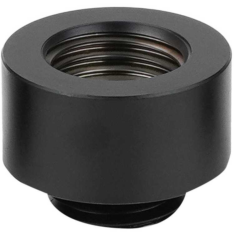 De DeltaMate Extender – MF10 heeft een G1/4”-buiten- (male) en binnenschroefdraad (female) en heeft een hoogwaardige afwerking in de vorm van een matzwarte chroomcoating, die bovendien gemakkelijk te reinigen is. De extender wordt gebruikt als verlengstuk tussen de aansluiting op de waterkoelingscomponenten en de fitting en vergroot de afstand met 10 mm. Kan worden gecombineerd met een DeltaMate Rotary Fitting om een directe vervanging voor draaibare fittingen te creëren.