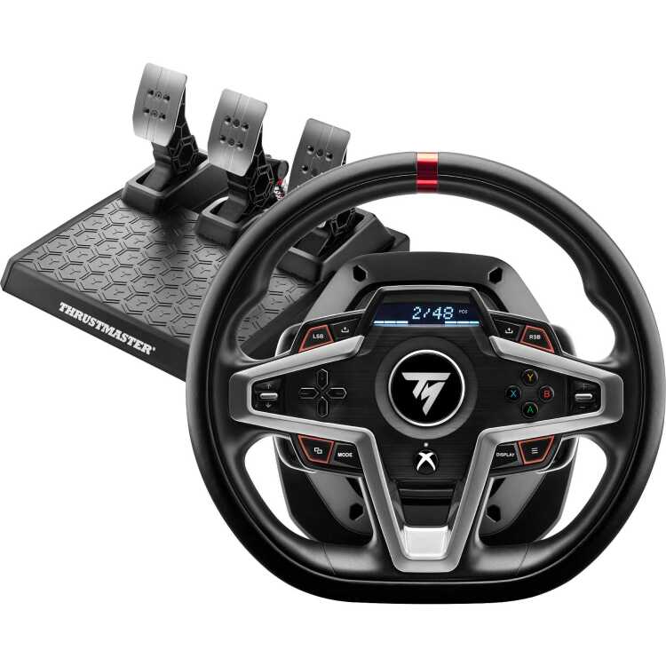 De Thrustmaster T248 is een racestuur officieel gelicentieerd voor Xbox game consoles. Dit stuur is ontworpen voor alle gamers die op zoek zijn naar performance en immersie en die zich willen ontdoen van hun toetsenbord, muis of gamepad, of hun vaardigheden willen verbeteren na ooit te zijn begonnen met een stuur voor beginners. De T248 is voorzien van een nieuw geoptimaliseerd HYBRID DRIVE-systeem met een gemengd riem- en tandwielmechanisme voor krachtige, realistische en veelzijdige force feedback. De T248 is 70% krachtiger (vergeleken met de vorige hybride racesturen van Thrustmaster (T150-reeks) en beschikt daarnaast over geavanceerde nieuwe functies, zoals force feedback-presets die tijdens het gamen on the fly kunnen worden gewijzigd, magnetische schakelpaddles, een interactief scherm met meer dan 20 verschillende displays en een magnetische pedaalset met 4 drukmodi op het rempedaal.