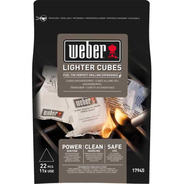 Met de Weber aanmaakblokjes kan houtskool ook bij wind en regen snel worden aangestoken. Ze zijn gemakkelijk en veilig te hanteren dankzij de individuele verpakking van elk aanmaakblokje. De aanmaakblokjes zijn milieuvriendelijk en branden zonder de geur of smaak van het eten aan te tasten zoals bij vloeibare brandstoffen.