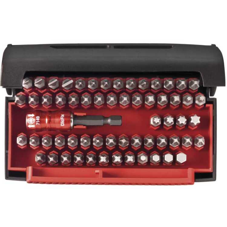 Geen hand vrij en genoeg van het lastige zoeken naar de juiste bit? Met de Wiha Bitset Collector Standard 25 mm heb je een universeel assortiment (62-delig) dat direct geschikt is voor zowel machinaal als handmatig gebruik. Inclusief een CentroFix Force snelwisselhouder, magnetisch. Alle gangbare 25 mm bits zijn compact en plaats besparend ondergebracht in een robuuste box van duurzame kunststof. Met één druk op de knop opent de box automatisch.