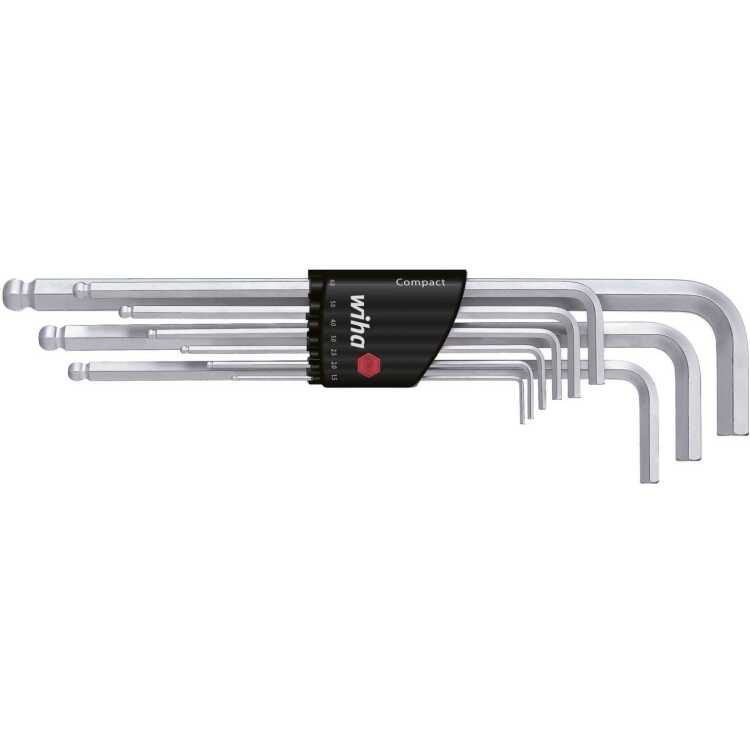 De Wiha inbussleutelset 01418 in de Compact houder zijn gemaakt van chroom vanadium staal, door en door gehard en mat verchroomd. Zij zijn geschikt voor moeilijk bereikbare schroeven en kunnen met weinig moeite hoge draaimomenten overbrengen. De kogelkop aan de lange zijde van de haakse inbussleutels maakt het mogelijk schuin te schroeven met een hoek tot 25°. Dankzij zijn compacte vorm past de houder perfect in elke zak van de duimstok.