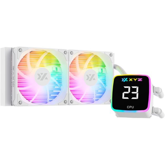 Beheers de hitte en til je prestaties naar een hoger niveau met de XYZ Aquapulse AIO 240 Waterkoeling kit. Deze alles-in-één waterkoeling oplossing combineert uitzonderlijke prestaties, strakke esthetiek en intelligente functies om je CPU op optimale temperaturen te houden. Digitale temperatuurweergave: Behoud nauwkeurige controle over de temperatuur van je CPU met de digitale weergave geïntegreerd in het pompblok. Monitor de prestaties van je systeem in real-time en pas instellingen indien nodig aan. Pulsar 120mm PWM A-RGB fans: Geniet van stille en efficiënte koeling met de twee meegeleverde 120mm Pulsar ventilatoren. Deze PWM ventilatoren bieden nauwkeurige snelheidsregeling en hebben aanpasbare ARGB-verlichting om een lichtshow in je pc te creëren. Eenvoudige installatie: De AQUAPULSE 240 is ontworpen voor eenvoudige en probleemloze installatie, met een universele montagebeugel die compatibel is met een breed scala aan Intel en AMD sockets. Hoog-efficiënte pomp: De hoog-efficiënte pomp zorgt voor een constante stroom koelvloeistof, maximaliseert de warmteafvoer en houdt je CPU op optimale temperaturen, zelfs onder zware belasting. Hoogwaardige gevlochten slangen: De hoogwaardige gevlochten slangen bieden niet alleen duurzaamheid en weerstand, maar voegen ook een esthetisch tintje toe aan je setup. Brede compatibiliteit: De AQUAPULSE 240 is compatibel met een breed scala aan Intel en AMD sockets, waardoor het een veelzijdige optie is voor elke gaming- of high-performance pc.
