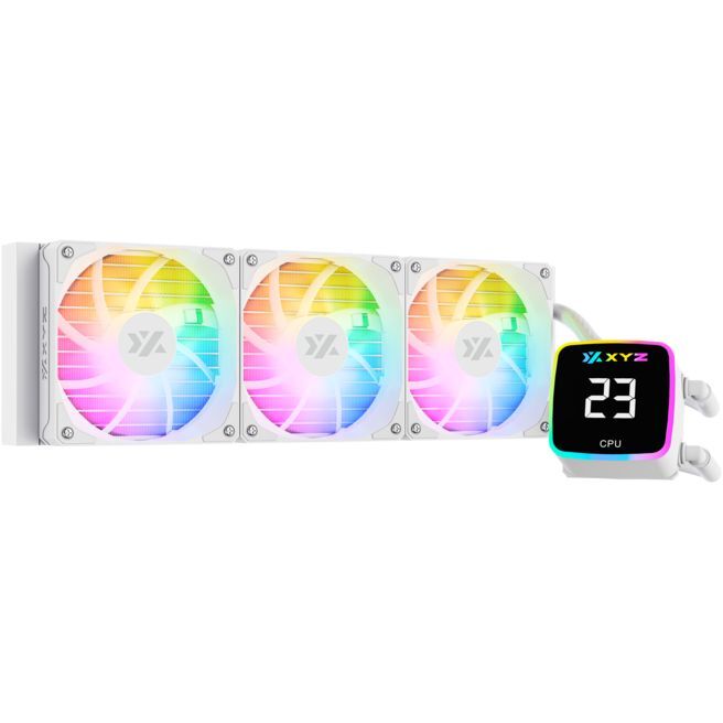 Beheers de hitte en til je prestaties naar een hoger niveau met de XYZ Aquapulse AIO 360 Waterkoeling kit. Deze alles-in-één waterkoeling oplossing combineert uitzonderlijke prestaties, strakke esthetiek en intelligente functies om je CPU op optimale temperaturen te houden. Digitale temperatuurweergave: Behoud nauwkeurige controle over de temperatuur van je CPU met de digitale weergave geïntegreerd in het pompblok. Monitor de prestaties van je systeem in real-time en pas instellingen indien nodig aan. Pulsar 120mm PWM A-RGB fans: Geniet van stille en efficiënte koeling met de drie meegeleverde 120mm Pulsar ventilatoren. Deze PWM ventilatoren bieden nauwkeurige snelheidsregeling en hebben aanpasbare ARGB-verlichting om een lichtshow in je pc te creëren. Eenvoudige installatie: De AQUAPULSE 360 is ontworpen voor eenvoudige en probleemloze installatie, met een universele montagebeugel die compatibel is met een breed scala aan Intel en AMD sockets. Hoog-efficiënte pomp: De hoog-efficiënte pomp zorgt voor een constante stroom koelvloeistof, maximaliseert de warmteafvoer en houdt je CPU op optimale temperaturen, zelfs onder zware belasting. Hoogwaardige gevlochten slangen: De hoogwaardige gevlochten slangen bieden niet alleen duurzaamheid en weerstand, maar voegen ook een esthetisch tintje toe aan je setup. Brede compatibiliteit: De AQUAPULSE 360 is compatibel met een breed scala aan Intel en AMD sockets, waardoor het een veelzijdige optie is voor elke gaming- of high-performance pc.